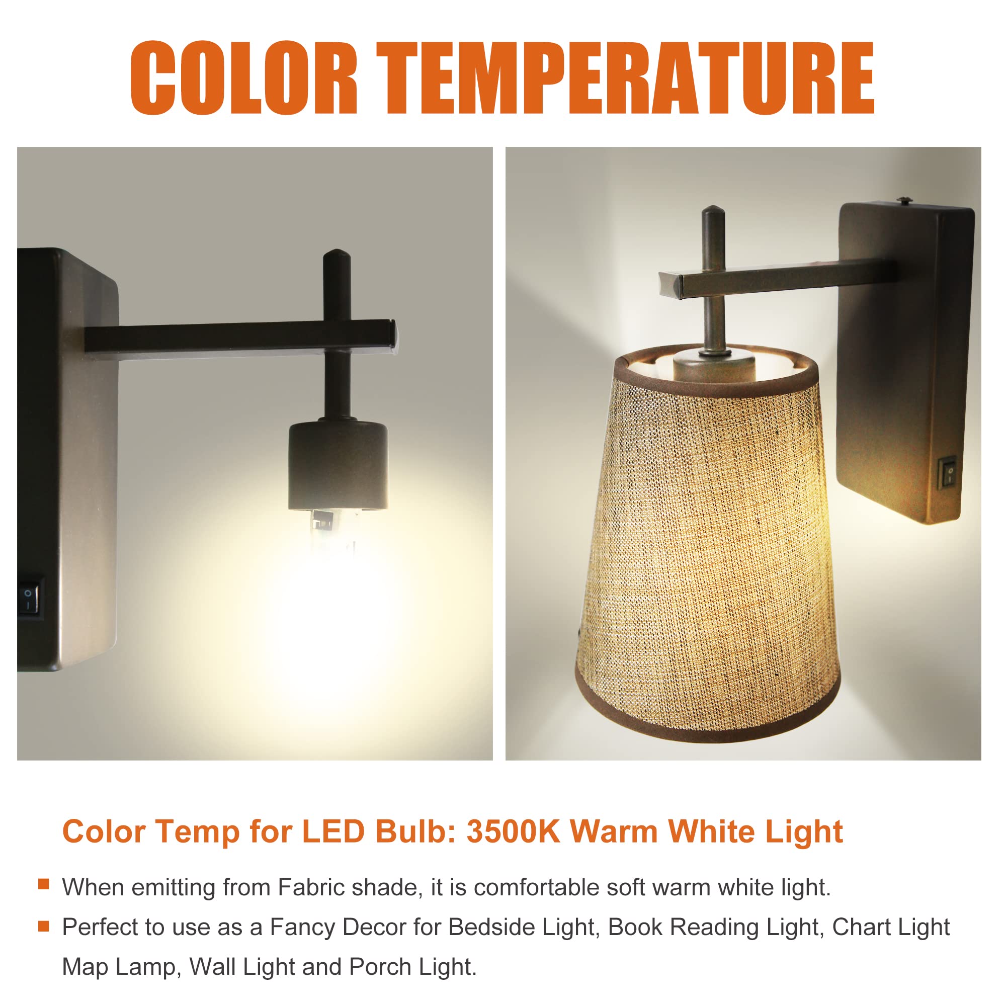 - ăBuild-in On&Off Switchă The lights comes with a replaceable LED bulbs that only provide 2W power to save your vehicle battery power. CCT for the light bulb is 3500K warm white light, when emitting from fabric shade, it is comfortable soft light. Build-in on&off switch to control the light fixture easily, no extra switch is needed.