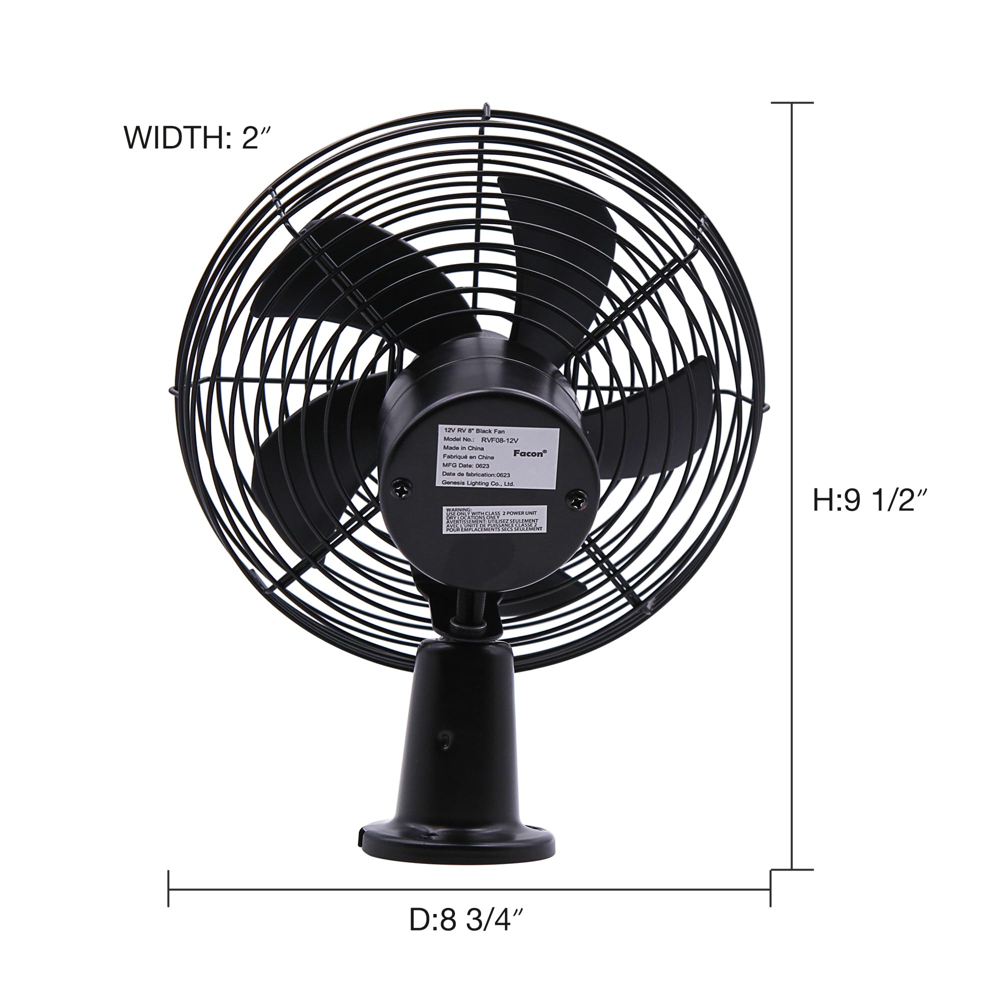 Facon 12V RV Cooling Fan with 2 Speed Switch, Dia: 8-3/4’’, Heavy Duty Black Metal Car Fan, for Auto Truck, RV, Camper, Trailer, Car, Buses and Boats