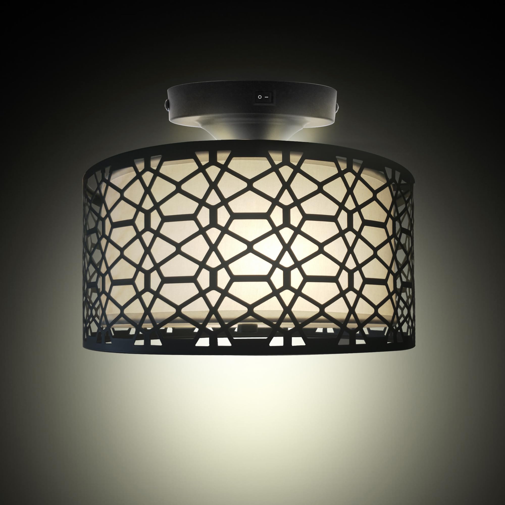 - ăBuild-in Switch & Easy InstallationăDia: 11'' x Height 7-7/8'', mounting base dia is 4-1/2ââ. This led dinette light features a white fabric + matte black traditional scroll flower shade. It brings new style to your RV & Camper remodel. Build-in On&Off switch for your easy control, no additional wall switch is needed. This pendant light has simple structure and hardware are included in the package, so you can install this fixture easily.