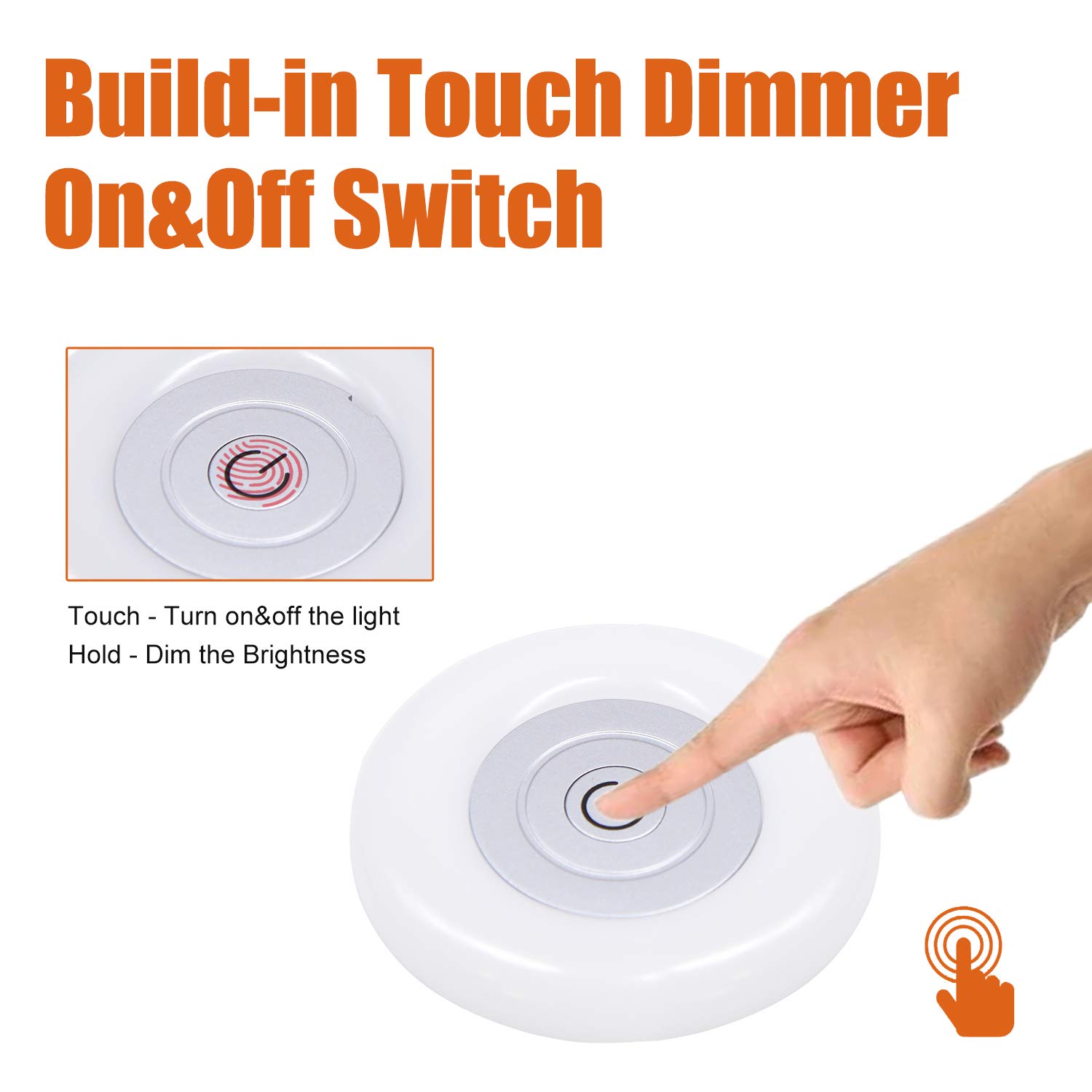 - ăDimmable Touch Switchă Add LED light and touch dimmer switch combo, bring great conveniences to use as a RV puck light. Build-in touch dimmer switch - full range of brightness control. Touch the switch to turn On & Off the light. Hold on the switch to dim the light.
